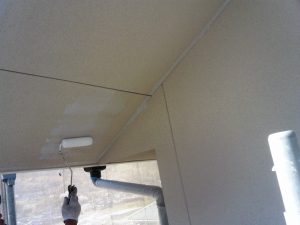 軒天井と破風板です。それぞれ違う種類の下塗材を使用してます。