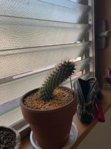 ネットで調べたら日照不足の様で鉢を毎日くるくると動かしております。
